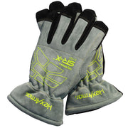 FireArmor® SR-X® 8180 structural firefighting gloves are built to battle high heat and intense situations, equipped with 360° water and heat resistance for unsurpassed protection while on the job. Gloves feature an added back-of-hand Kevlar® inner liner and reinforced cut-resistant protection for accident-prone areas. Additionally, each glove is built with water-resistant and flame resistant cow suede, including form-fitted fingers, to maintain superior comfort and dexterity right out of the bag, even after repeated use and washing. Designed with H2X+™ technology to barrier against water, chemicals, and bloodborne pathogens while on the job.