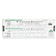 Cascade's nozzle discharge/friction loss Slide Calculator is a useful tool in wildland firefighting. It determines flows through nozzle sizes as small as 3/16” at practical fire nozzle pressures. Calculate friction loss in hose lines of various sizes through a flow range as small as 5 GPM. The two-sided design displays both English and Metric measurements.