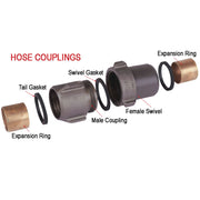 There are two types of Hose Gaskets; Swivel Gaskets and Tail Gaskets. Swivel Gaskets are placed in the female end of a hose coupling and/or a female swivel.