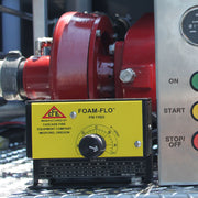 The Foam-Flo™ can easily be installed on Slip-On Units, Portable Pumps or Pumpers. There are three hoses, one is attached to the pump suction, the second hose attaches to the pump discharge, and the third to the foam concentrate. All connections are on the back side. An integrated ball check valve prevents water from entering the foam supply. All components are anodized aluminum, brass or stainless steel, and the label is a tough waterproof vinyl.