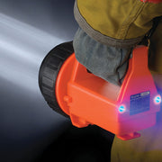 - High impact ABS thermoplastic housing in high-visibility orange with rubberized cushioned-grip handle