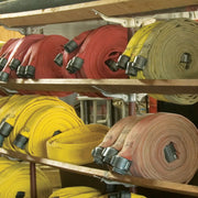 Hose Rack Brackets allow well ventilated and accessible hose storage in a limited space at a low cost. The brackets are bolted to pipe supports, which have been secured to the floor and ceiling with pipe flanges. Once secured, 2” x 6” stringers are bolted to the brackets and the hose storage racks are ready to use.