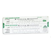 Cascade's nozzle discharge/friction loss Slide Calculator is a useful tool in wildland firefighting. It determines flows through nozzle sizes as small as 3/16” at practical fire nozzle pressures. Calculate friction loss in hose lines of various sizes through a flow range as small as 5 GPM. The two-sided design displays both English and Metric measurements.