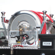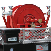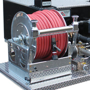 The standard painted steel Hannay Booster Hose Reel is the dependable, rugged reel that has set the standard for fire service reels for over 50 years. The “Super Booster“ (aluminum construction) reel weighs up to 30% less than standard booster reels and features an all-aluminum frame and drum, chip-proof polished aluminum discs, and plated drive chain, sprocket, hub assembly, swivel joint and fastenings. No painting or finishing is required. Both reels have the same construction features.